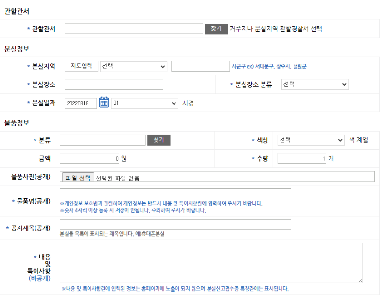 인터넷 접수는 경찰청 유실물 센터 홈페이지를 통해 간편하게 가능합니다.