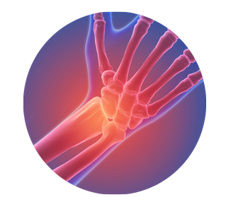 - 골관절염: 골관절염은 연골이라고 불리는 관절을 보호하는 조직이 마모되어 뼈가 서로 마찰하는 상태입니다. 연골의 마모는 나이가 들면서 자연스럽게 발생할 수 있지만, 과체중, 손상, 유전 등의 요인으로 가속될 수 있습니다. 골관절염은 주로 손, 무릎, 고관절 및 척추에 영향을 미칩니다. 골관절염의 증상으로는 **관절 통증**, 경직, 운동 제한, 마찰음 등이 있습니다. 골관절염은 연골을 회복시키거나 재생시키기 어렵기 때문에 완치하기 어렵습니다. 그러나 진통제, 물리 치료, 체중 감량 등으로 증상을 완화하고 진행을 늦출 수 있습니다.