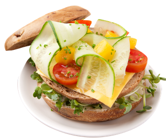 - 샌드위치 (전체곡물빵, 닭가슴살, 계란, 토마토, 양상추 등)과 과일