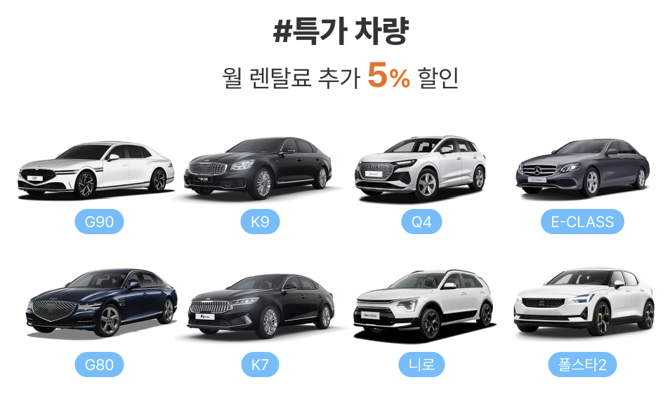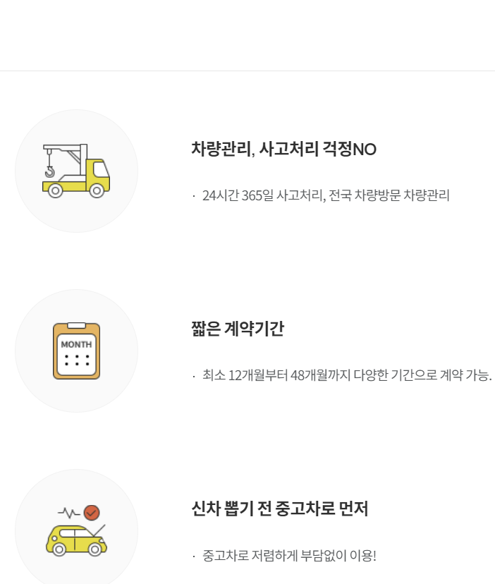 보험료, 자동차세, 정비 비용(선택 항목) 등 부대 비용은 월 렌트비에 포함됩니다.