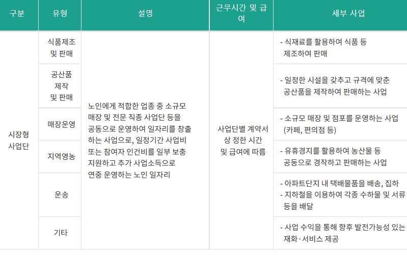 시장형 사업단, 취업알선형은 만 60 세 이상의 사업특성 적합자이면 가능합니다.
