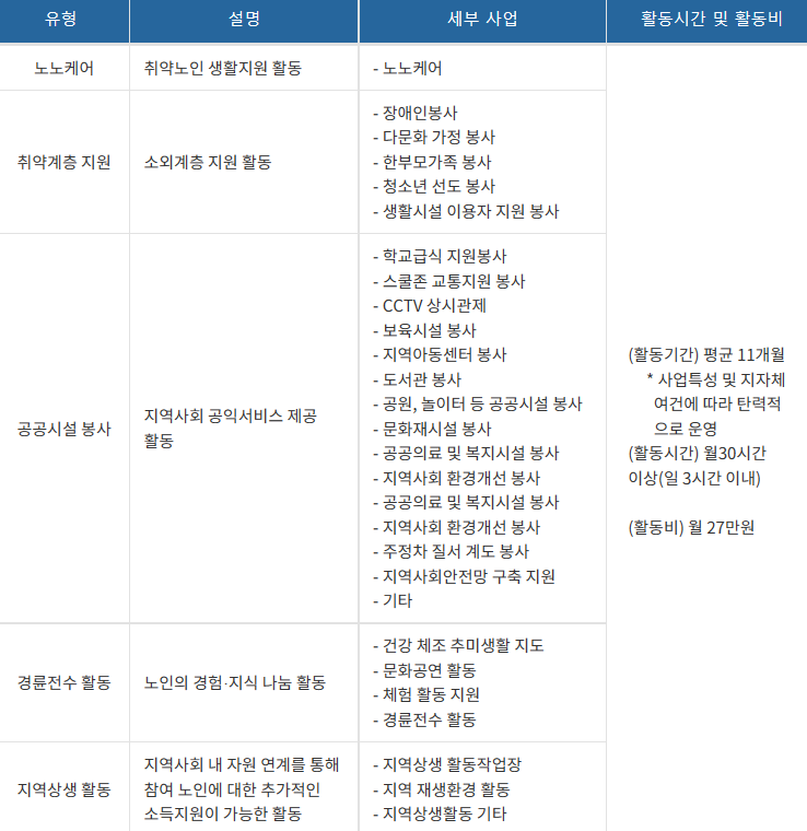 노인일자리 및 사회활동 지원사업에 대한 정보를 알아보도록 하겠습니다.