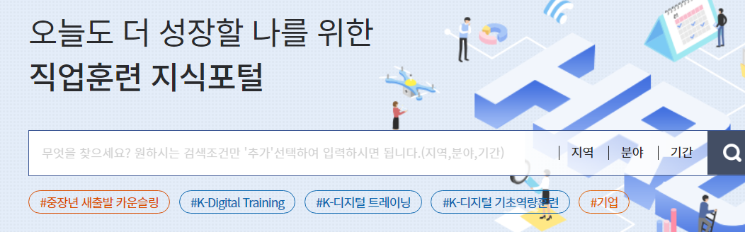 직업훈련포털을 통해 원하는 훈련과정을 검색 후 수강신청하면 됩니다.