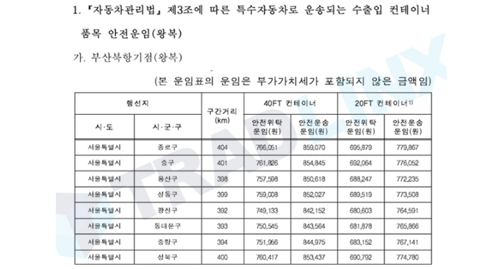 지급받는 최소한의 운임을 공표하는 제도입니다. 화물안전 운임제는 화물 운송 종사자분들은