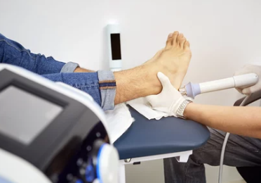 - 체외 충격파 치료 (ESWT): 고에너지 충격파를 이용하여 족저 근막의 염증을 줄이고 통증을 완화하며, 조직 재생을 촉진합니다.