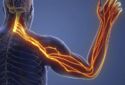 목뼈 사이 추간판이 신경을 눌러서, 그 신경이 이어지는 팔과 손에 저림, 당김, 뻐근함이 나타납니다.