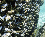 홍합 껍데기에는 이물질, 이끼, 딱딱한 부착물이 많습니다.