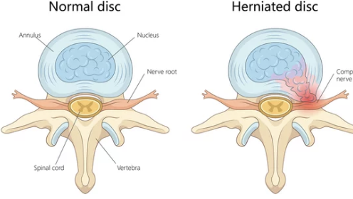 하지만 노화나 외상으로 디스크가 밀려나 신경을 누르면,