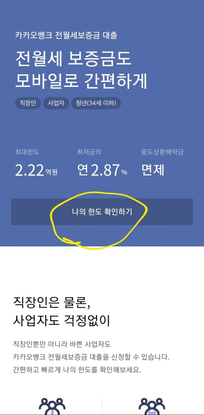 청년전용 전월세보증금 대출은 만 19세부터 34세까지의 청년이라면 재직기간이 짧더라도 카카오 뱅크에서 청년 전월세 보증금 대출을 심사 후 한도와 금리가 책정되어 대출 진행을 하실 수 있습니다.
