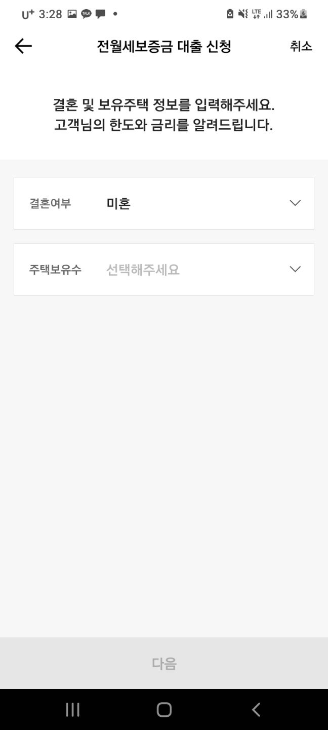 신청인의 소득정보를 누른 뒤 다음을 누르면 결혼 여부와 주택 보유 수 설정하는 게 나옵니다.
