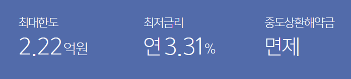 최대한도2.22억원 최저금리 연 3.31%로 이용할 수 있는 상품입니다.